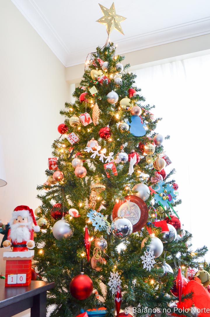 E se você achou que a minha árvore está meio “bagunçada”, explico o motivo. Esse ano ganhamos vários enfeites novos, feitos pelos amiguinhos da sala de Sophia, nossa filha mais nova. Ela ficou 1 semana internada no hospital por conta de uma apendicite (vou falar sobre isso com detalhes depois) e eles fizeram enfeites desejando sua melhora. A professora enviou um envelope e quando abrimos estavam todos lá, junto com inúmeras mensagens dizendo como ela é especial e estavam com saudades. Coloquei todos eles na nossa árvore e continuarei fazendo todos os anos para lembrarmos do carinho que recebemos nesse momento tão delicado. Ahhh, caiu um cisco no seu olho agora não foi?