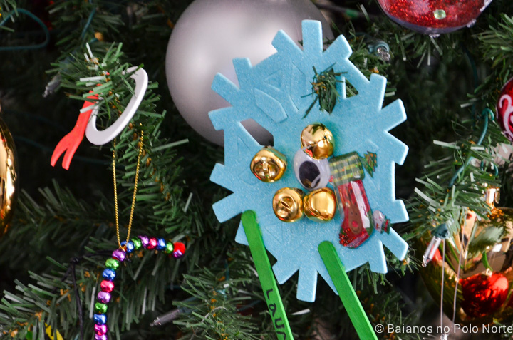 No Canadá muitos enfeites colocados na árvore tem um significado especial para as famílias. Alguns enfeites são passados por gerações e outros são comprados, ou feitos, para simbolizarem um evento. As meninas já fizeram alguns na escola e sempre penduramos na árvore.