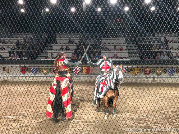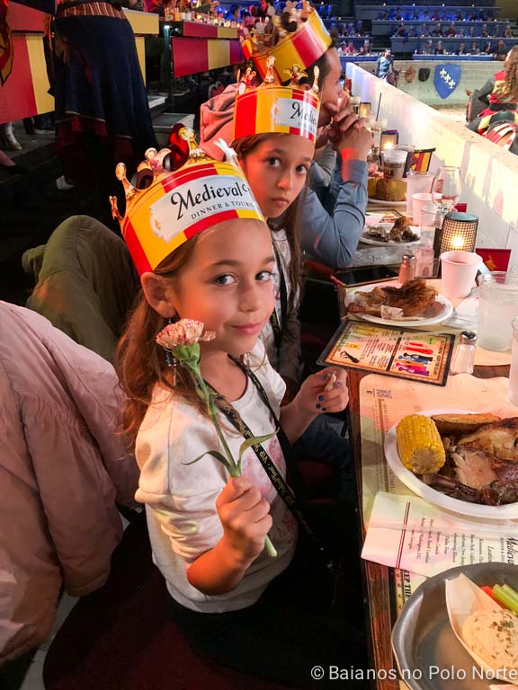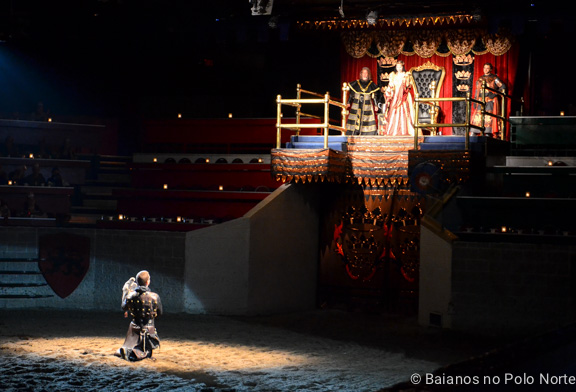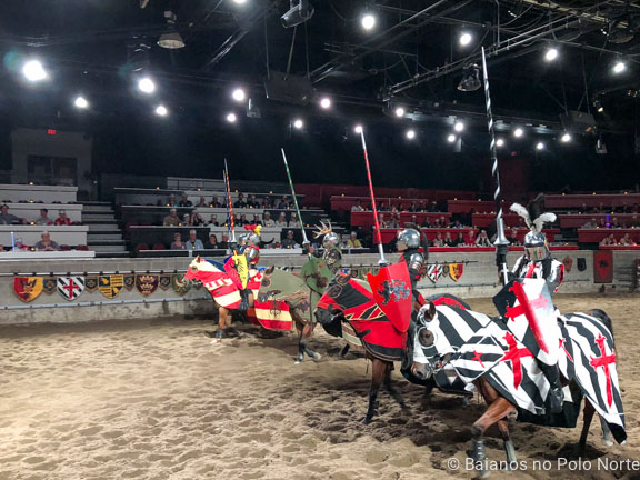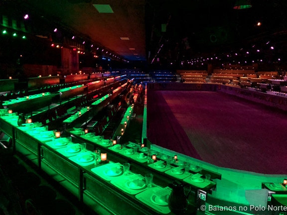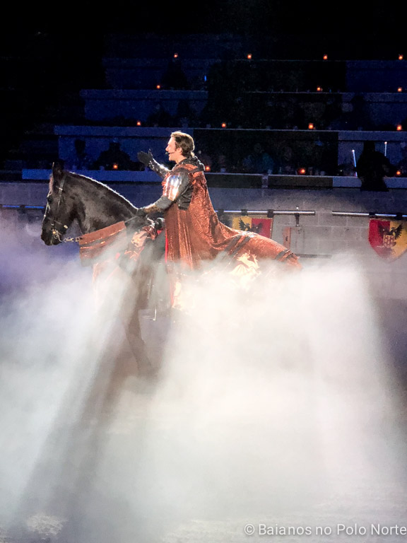 Para quem não conhece, o Medieval Times oferece um show temático com jantar. O espetáculo dura mais ou menos 2 horas. A história se passa num castelo do século 11, na Espanha.