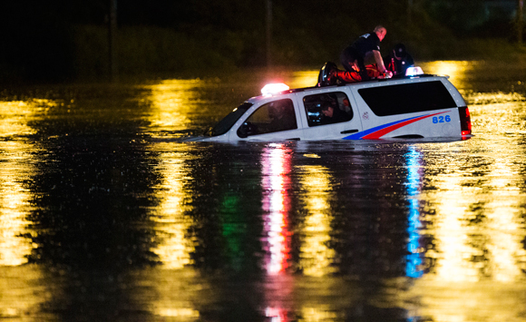 Os passageiros do trem da GO foram resgatados de barco. Foto: AP