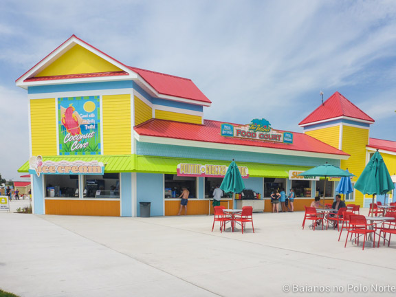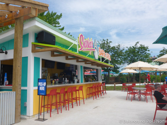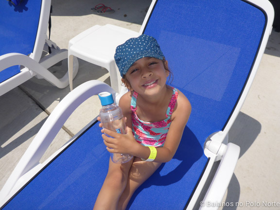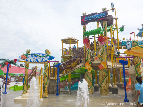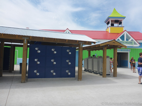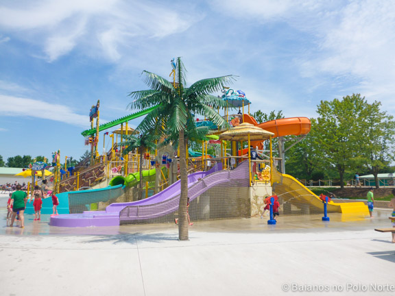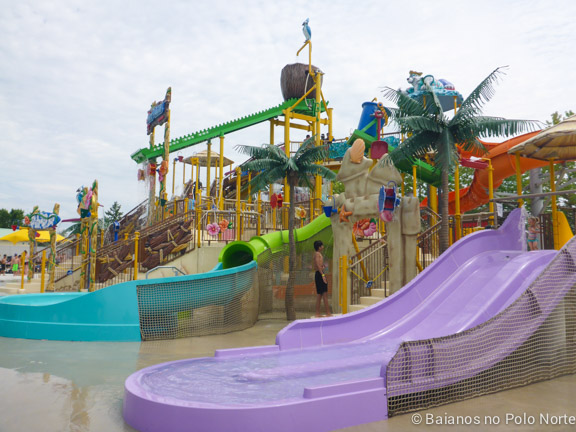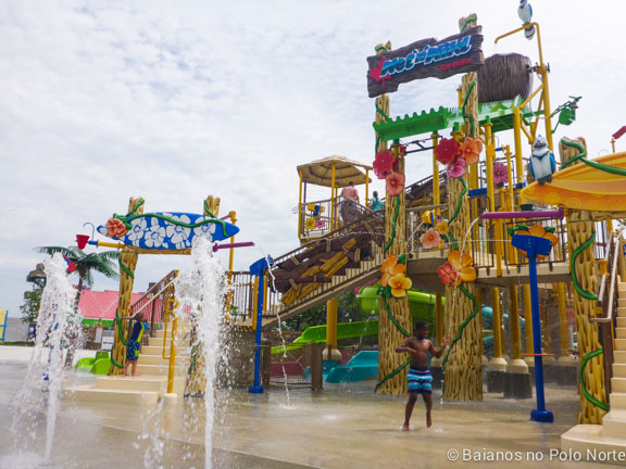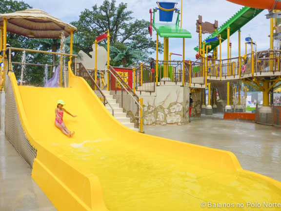 Nossa cabana estava em frente a essa área e parece que eles adivinharam onde as minhas filhas iam passar a maior parte do dia. A estrutura é imensa, com escorregadores de vários tamanhos e chafarizes por todo lado. Para completar, um balde imenso despejava água toda hora nas crianças (e adultos) que estavam brincando no local. Não há altura mínima para brincar mas para crianças muito pequenas é preciso ficar de olho por causa das escadas e correria dos maiores.