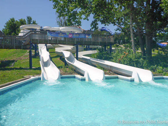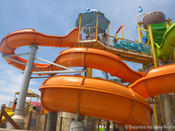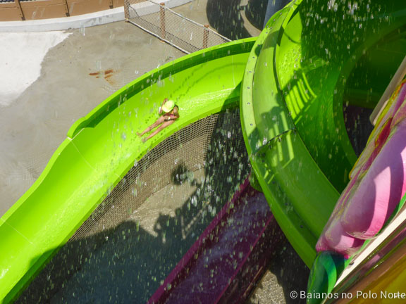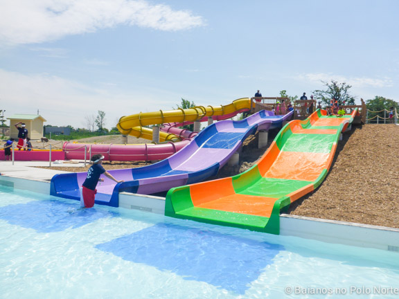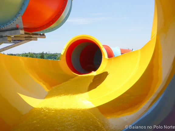 Três escorregadores bem tranquilos onde podemos descer sentados ou deitados. Não há nenhuma curva brusca e a velocidade de descida é devagar. Minha filha de 7 anos foi sozinha e curtiu.