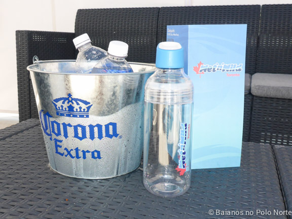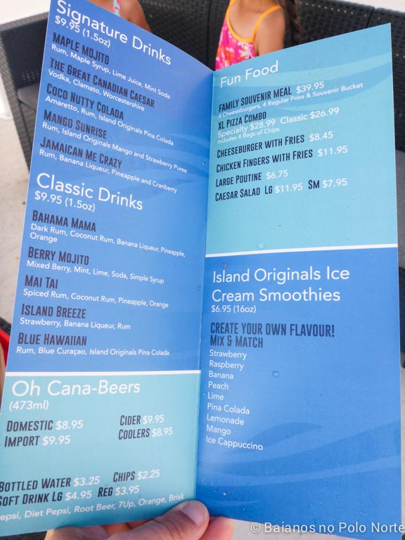 Essa garrafa que a minha filha está segurando custa $12.95 e dá direito a refill gratuito o dia inteiro (bebidas não alcóolicas) no dia da compra. Se levarmos a garrafa sempre que visitarmos o Wet ‘n’ Wild, podemos pagar $1.50 e beber a vontade.