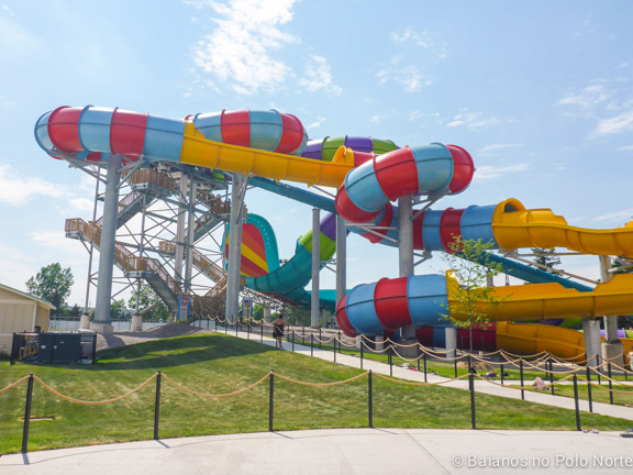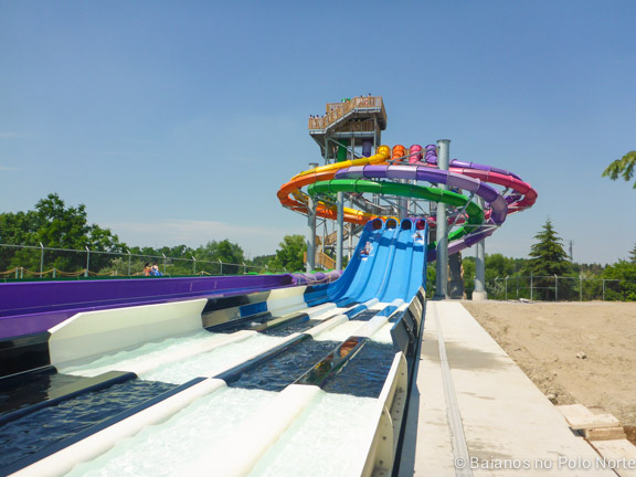 O Wet ‘n’ Wild é uma rede de parques conhecida mundialmente. No ano passado eles resolveram vir para Toronto e compraram o antigo Wild Water Kingdom, um parque aquático antigo e que estava bem caidinho. Eles investiram 25 milhões de dólares em novos brinquedos e estrutura. Como tivemos muitas chuvas em 2017 as obras atrasaram um pouco e portanto o parque ainda não está completamente finalizado.