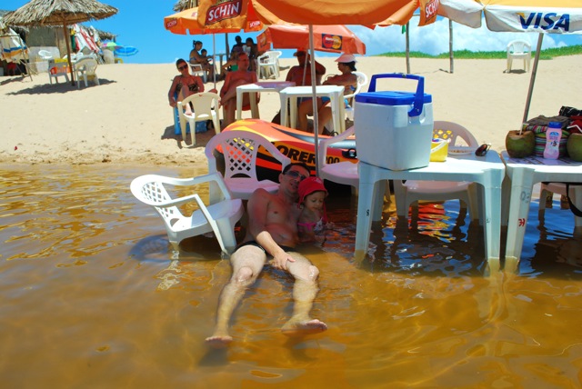 Mas atenção: fique atento a maré! Quando subir, o nível do rio se eleva e toma a passagem de volta para a trilha que vai dar no estacionamento. Os adultos passam andando mas as crianças não.