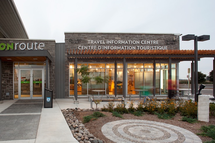 Alguns postos de apoio possuem um centro de informações turísticas, onde você pode pegar mapas e panfletos informativos sobre toda a província de Ontario, tudo free. Os postos de apoio da província de Ontario estão sendo todos modernizados com esse design Eco-friendly. No trecho entre Toronto e a divisa com a província de Quebec praticamente todos já são assim. No trecho Toronto-Detroit alguns também já foram modernizados. Os outros postos de apoio são ok e serão modernizados em breve. Ah e tem um posto a cada 70-80 km e placas de sinalização avisando a distância que falta para o próximo.