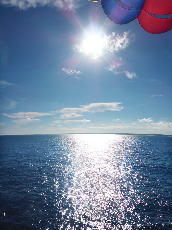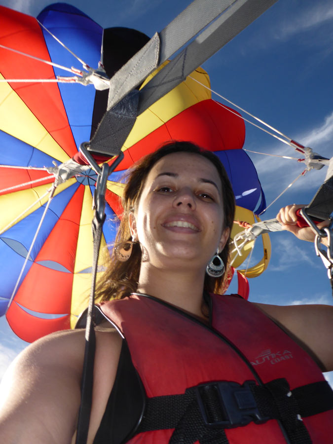 Após 10 minutos de êxtase, descemos lentamente e o Leo nos ajuda a voltar para a plataforma no barco. O pouso é tão tranquilo quanto a subida.
